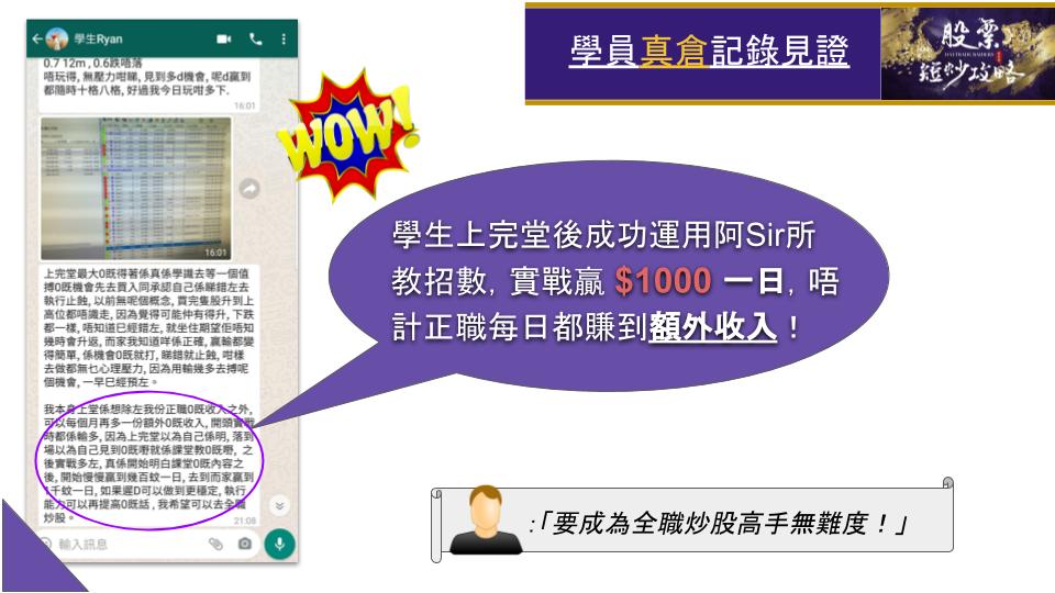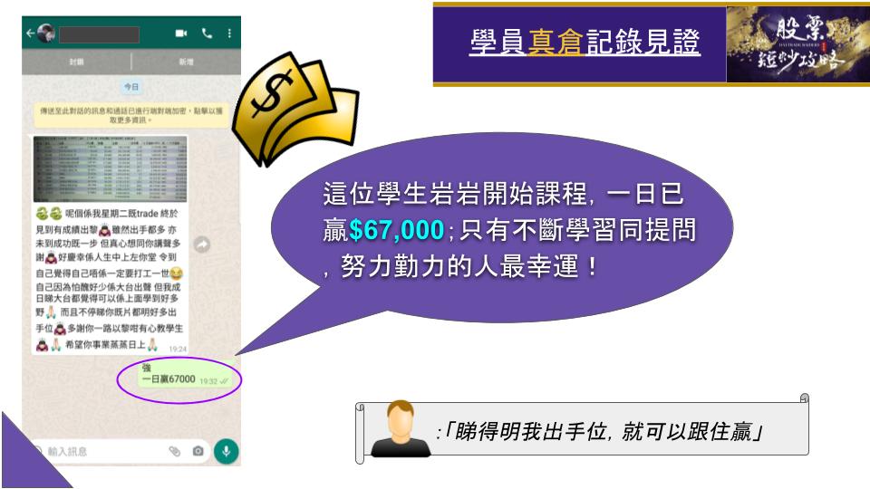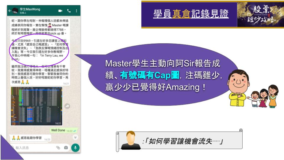 學生將會學懂如何提高命中率,避開跌浪,捕中反彈,提高時間效益!!